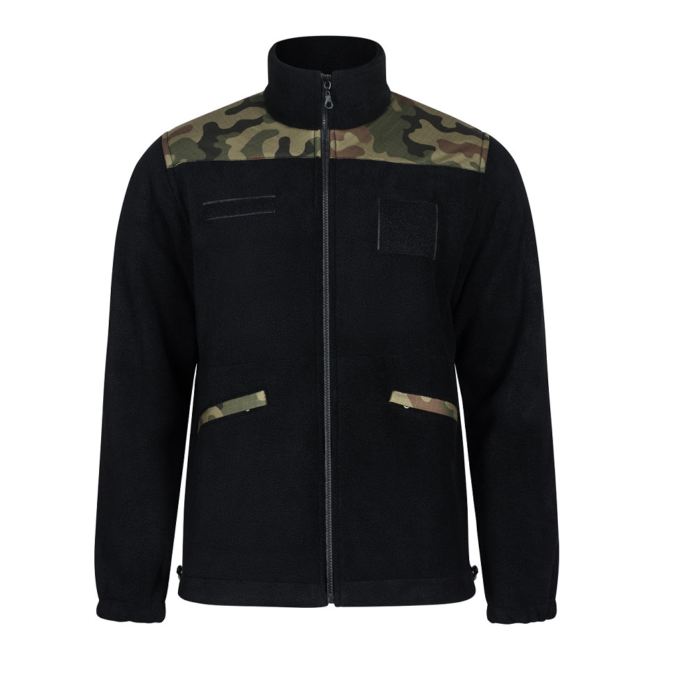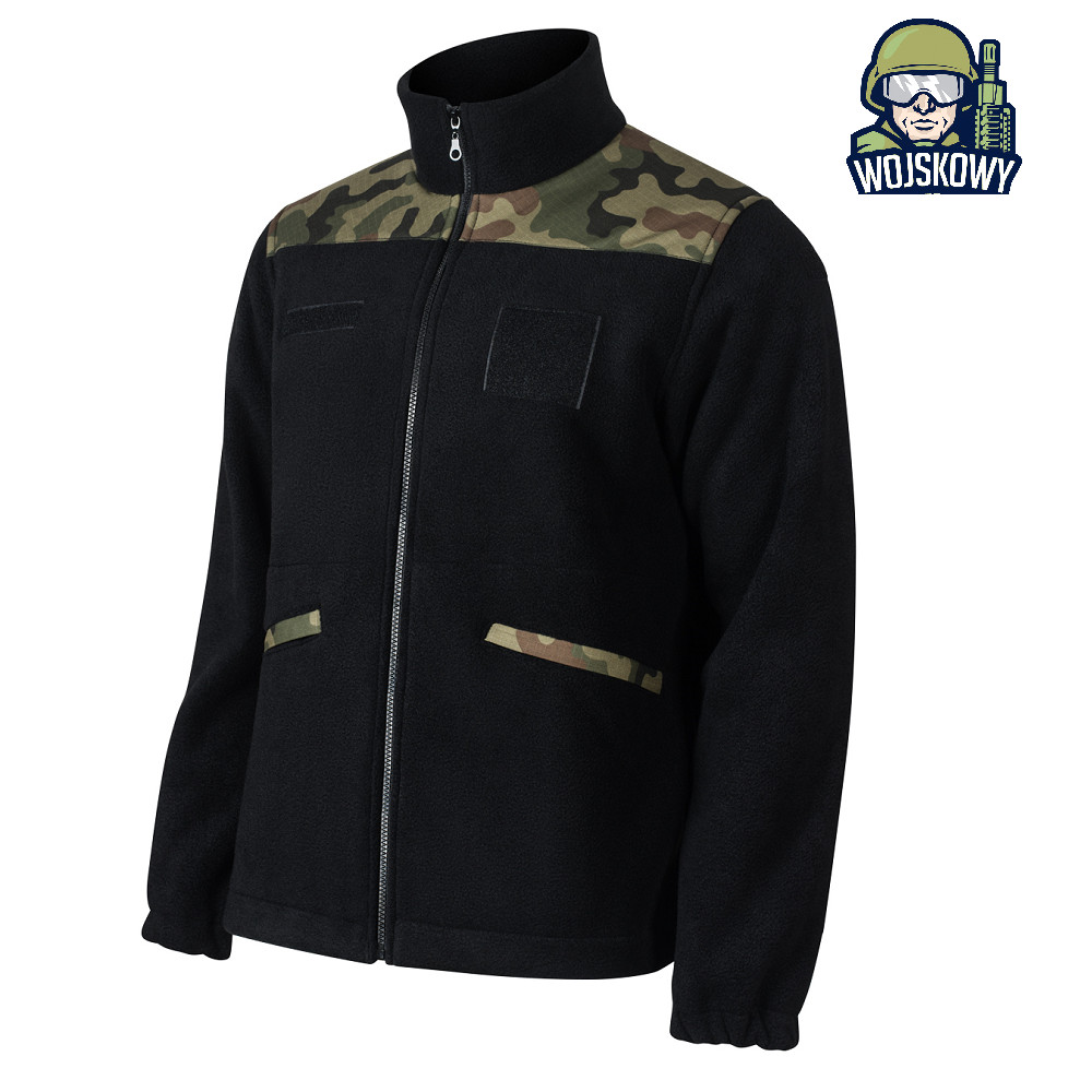 Bluza polarowa w kolorze czarnym. Posiada dwie kieszenie zasuwane na suwak, ściągacze u dołu po obu stronach oraz rękawy zakończone również ściągaczem. Na klatce piersiowej i na rękawach znajdują się rzepy służące do przypięcia dodatkowych naszywek i flag ( dostępne w naszym sklepie).