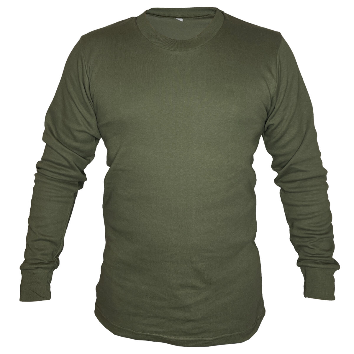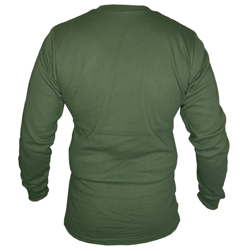 Koszulka bawełniana z długim rękawem w kolorze khaki pod mundur. Wykonana jest z wysokogatunkowej bawełny czesanej w składzie surowcowym 100% bawełna. Jakość wyrobu pierwsza. Koszulka jest lekka i przewiewna, wykończona miękką taśmą okalającą szyję.